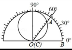 在半径为1的半圆形量角器中,画直径为1的圆,把刻度尺CA的0刻度固定在半圆的圆心O处,刻度尺可以绕O旋转,从图中所示的图尺中可读出的值( )。