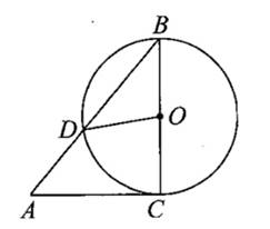 如图AC是圆O的切线,切点为C,BC是圆O的直径,AB交圆O于D,连接OD,若∠A=50°,则∠COD的度数为______。