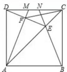 如图,M、N是正方形ABCD的边CD上的两个动点,满足AM=BN,连接AC交BN于E,连接DE交MA于F,连接CF,若正方形为6,则CF最小值是______。