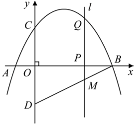 如图,抛物线与x轴交于点A,点B,与y轴交于点C,点D与点C关于x轴对称,点P是x轴上的一个动点,设点P的坐标为(m,0),过点P作x轴的垂线l交抛物线于点Q。