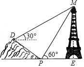 小明同学在综合实践活动中对本地的一座古塔进行了测量。如图,他在山坡坡脚P处测得古塔顶端M的仰角为60°,沿山坡向上走25m到达D处,测得古塔顶端M的仰角为30°。已知山坡坡度i=3:4,即,请你帮助小明计算古塔的高度ME。(结果精确到0.1m,参考数据:
