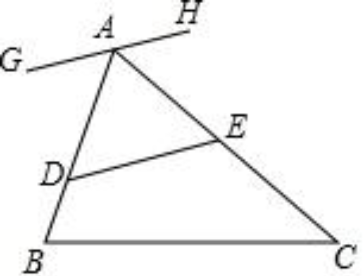 如图在中,AC=BC,点D和E分别在AB和AC上,且AD=AE,连接DE过点A的直线GH与DE平行,若