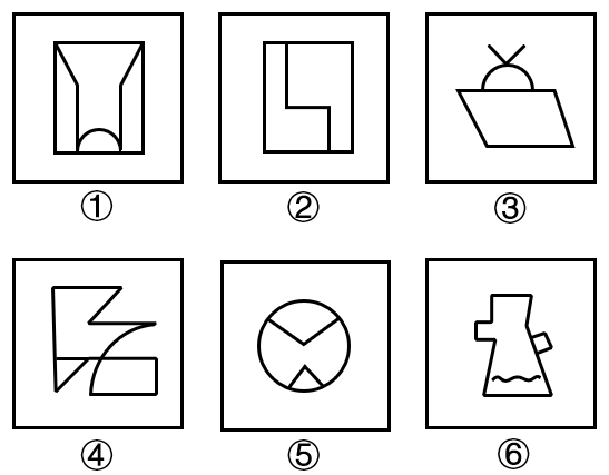 把下面六个图形分为两类,使每一类图形都有各自的共同特征或规律,分类正确的一项是: