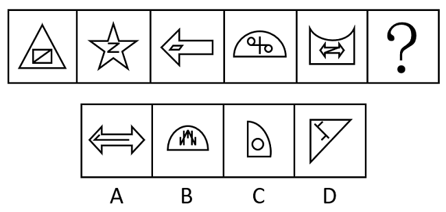从所给的四个选项中,选择最合适的一个填入问号处,使之呈现一定的规律性: