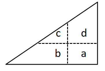将一张直角三角形形状的纸片进行两次折叠,展开后的折痕将该三角形分成如图所示的a、b、c、d四个部分,则两次折叠后的纸片投影面积为: