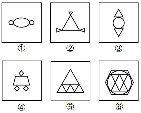 把下面的六个图形分为两类,使每一类图形都有各自的共同特征或规律,分类正确的一项是: