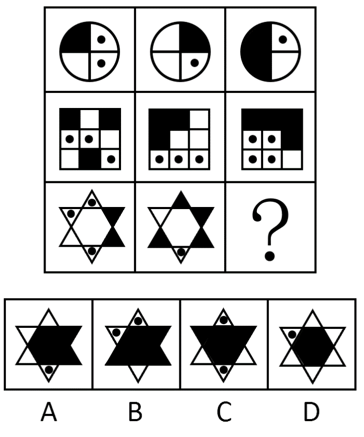 从所给的四个选项中,选择最合适的一个填入问号处,使之呈现一定的规律性: