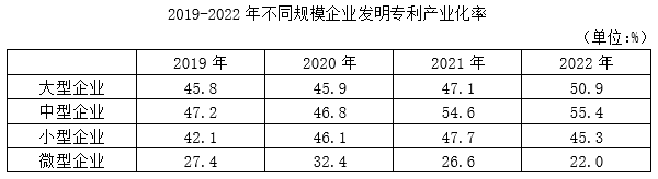 2021年,不同规模企业发明专利产业化率同比增速最快的是: