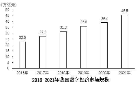 已知2021年全年人民币平均汇率约为1美元兑6.5元人民币,则2021年我国数字经济市场规模占全球47国的比重是: