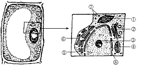 下列图1和图2是某细胞结构不同放大倍数的模式图,其中图2中的①—⑧是细胞内的相关结构,根据图中信息,下列叙述错误的是( )。