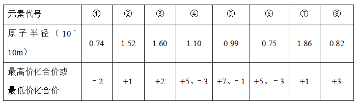 下表给出了八种短周期元素的某些性质,下列说法正确的是( )。
