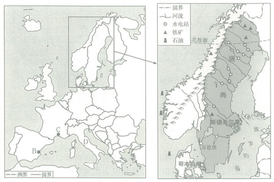 材料二 瑞典地处北欧,首都是斯德哥尔摩,是工业发达的国家。钢铁工业是瑞典的支柱产业之一。瑞典80%以上的钢铁产品用来出口。哥德堡是瑞典第一大港口和第二大工业城市,是瑞典和西欧通商的主要港埠。