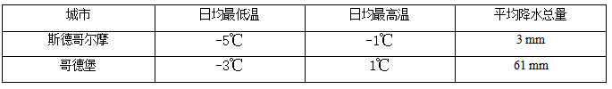 材料三 瑞典斯德哥尔摩市与哥德堡市1月气温与降水资料统计表如下。
