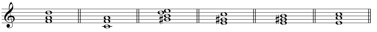 用音阶标记法标记下列a小调各和弦名称。(6分)