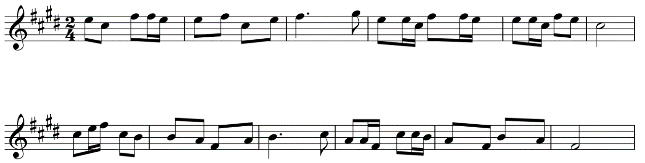 将以下片段按拍号正确组合,并划分小节。(5分)