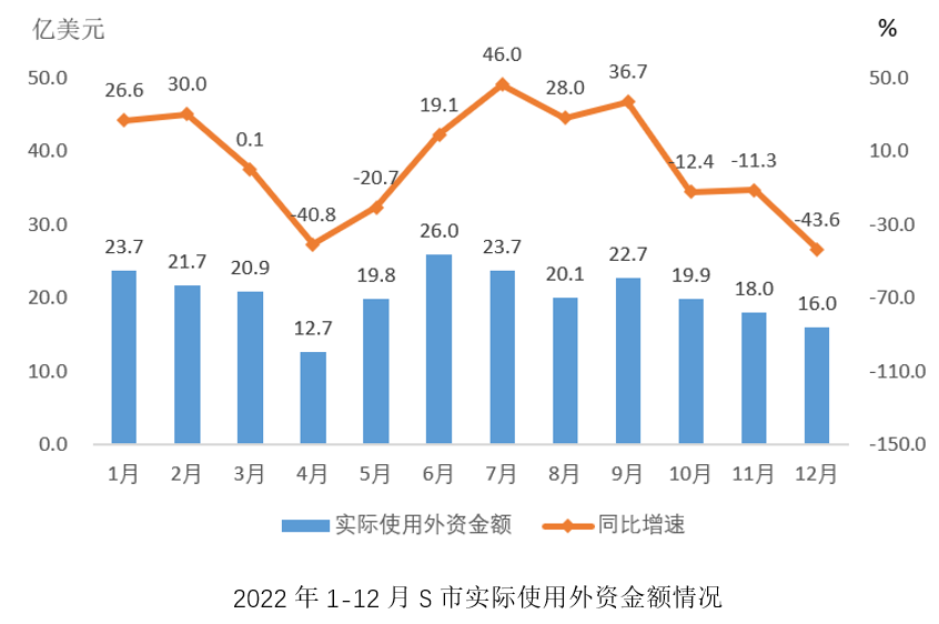 2022年112月,S市第一、第二产业实际使用外资金额同比( )。