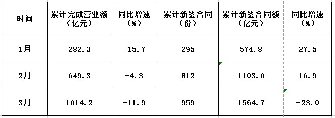 2021年第一季度我国对外承包工程业务新签合同额在以下哪个范围内?( )