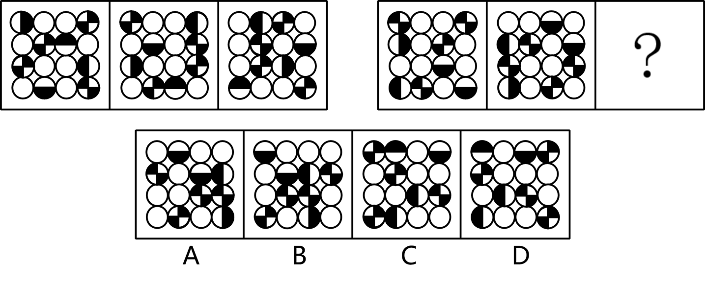 从所给的四个选项中,选择最合适的一个填入问号处,使之呈现一定的规律性。( )