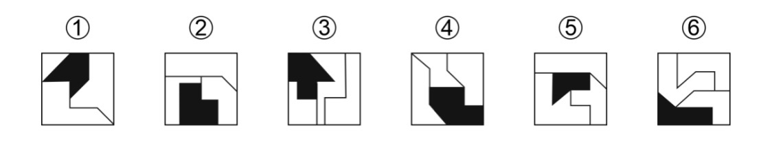 把下面的六个图形分为两类,使每一类图形都有各自的共同特征或规律,分类正确的一项是( )。