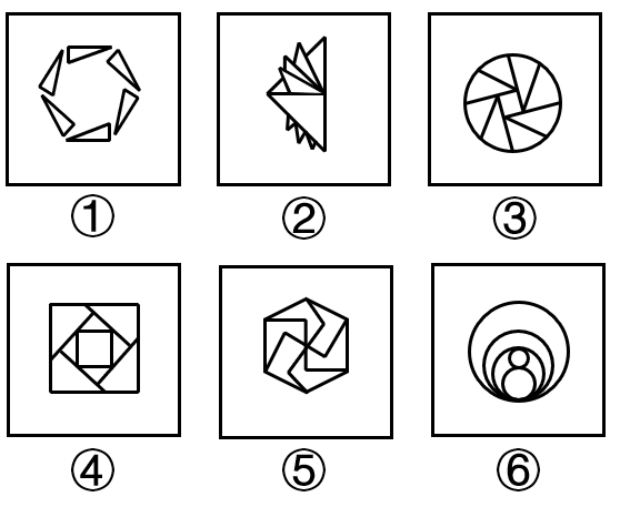 把下面的六个图形分为两类,使每一类图形都有各自的共同特征或规律,分类正确的一项是: