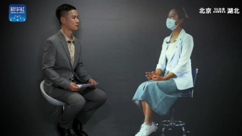 2021年全国“两会”前期,新华社首次推出异地同屏系列访谈,让身在异地的代表与记者跨越时空来“相见”,甚至远隔千里也可以让采访对象与记者“面对面”交流,如下图所示,此例子中使用到最主要的技术是( )。