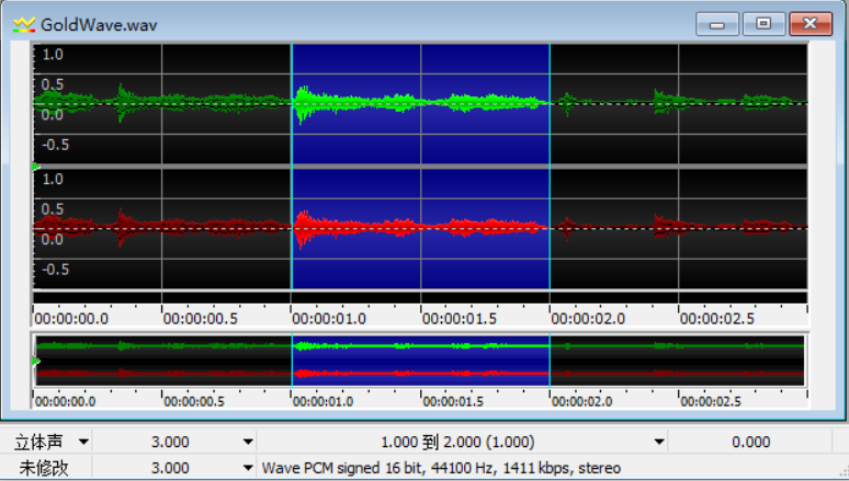 使用GoldWave软件打开某音频文件,选中其中一段音频后的操作界面如下图所示。下列说法正确的是( )。