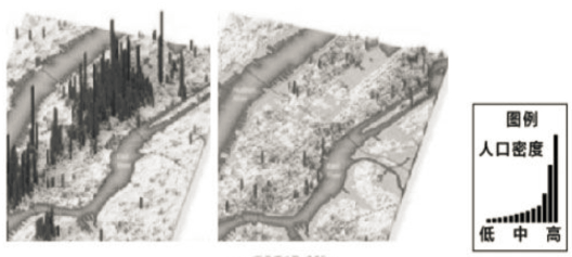 图12为某特大城市人口空间分布昼夜变化示意图。读图完成第24-25题。