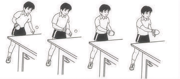 动作方法:右脚稍站前或两脚开立平站,身体离台约30厘米。持拍手臂微屈并做丘外旋,肘部自然靠近身体右侧,右手持拍于腹前,当来球处在反弹上升前期时,球拍略前倾,前臂和手腕外旋迅速用力向前推压,击球的中上部。推球时,前臂稍外旋,手腕外展,上臂向前顺势挥动。