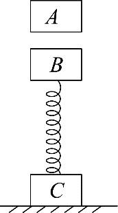 如图所示,质量为2kg的物体B和质量为1kg的物体C用轻弹簧连接并竖直地静置于水平地面上,再将一个质量为3kg的物体A轻放在B上的一瞬间,A与B之间的弹力大小为(取g=10)( )。