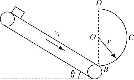 沿顺时针方向运动,竖直平面内的半圆形光滑轨道与传送带的底端B平滑连接(不计滑块进入轨道能量损失),且直径DO沿竖直方向,质量为 m的小滑块自传送带端A静止释放,小滑块运动到D点时的速度大小为