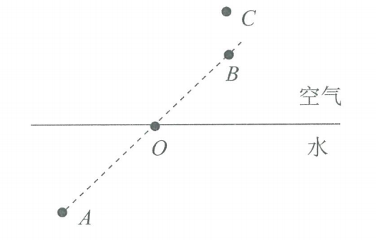 点在分界面上,图中未画出)射向空气,折射后通过空气中的B点,图中O点为AB连线与分界面的交点,下列说法正确的是( )。