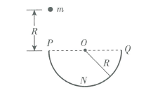 如图,一半径为R、粗糙程度处处相同的半圆形轨道竖直固定放置,直径POQ水平。一质量为m的质点自P点上方高度R处由静止开始下落,恰好从P点进入轨道。质点滑到轨道最低点N处时,对轨道的压力为4mg,g为重力加速度的大小。用W表示质点从P点运动到N点的过程中克服摩擦力所做的功,则( )。