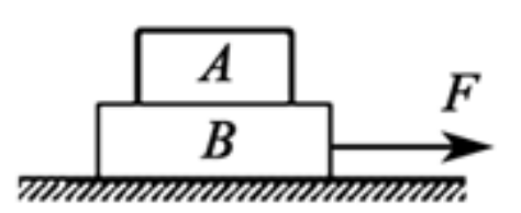 叠放在水平面上的A、B两个长方体物块,在水平恒力F的作用下,一起向右做匀速直线运动。则物块B运动过程中受力的个数是( )。