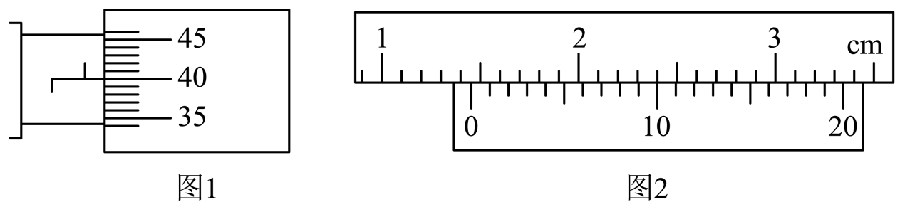 图1螺旋测微器读数为,图2游标卡尺读数为