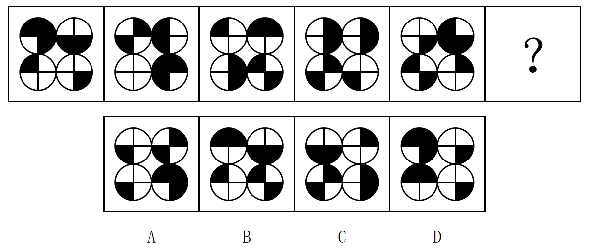 从所给的四个选项中,选择最合适的一个填入问号处,使之呈现一定的规律性( )。