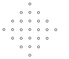 如图所示有25个点,行、列都以相等的间隔排列。用其中4个点作为顶点连接成正方形,那么有多少种不同边长的正方形?