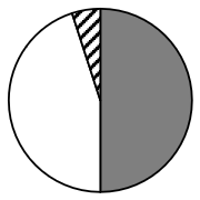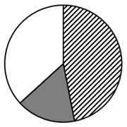 下列饼图中,最能体现2021年上半年福利彩票中乐透数字型(灰色)、即开型(白色)、基诺型(斜线)占比的是: