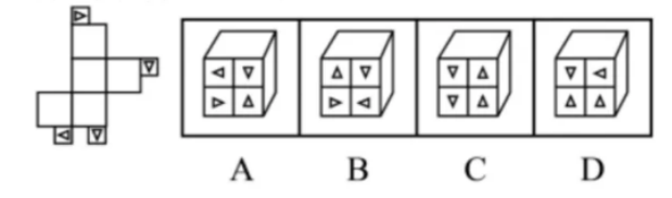 下列左边给定的是正方体表面展开图,右边哪项能由它折叠而成?( )