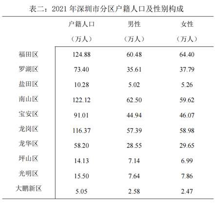 人口性别比是指男性人数与女性人数之比,通常以每100名女性对应的男性来表示,2021年,深圳市户籍人口性别比最大的是( )。