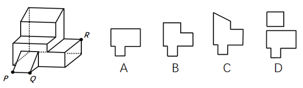 左边为给定的多面体,现用经P、Q、R三点的平面对其进行切割,问哪个选项是其切面?