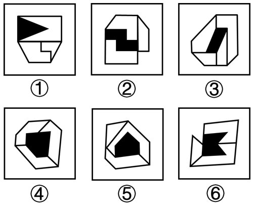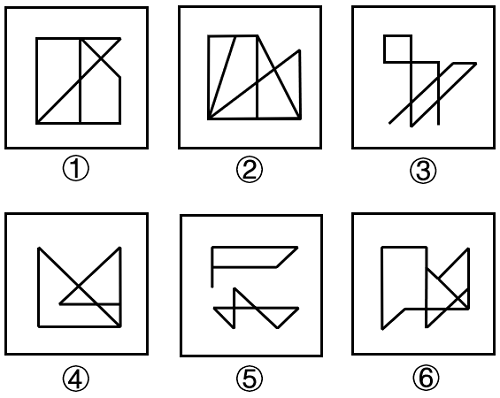 把下面的六个图形分为两类,使每一类图形都有各自的共同特征或规律,分类正确的一项是: