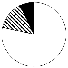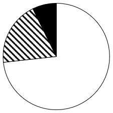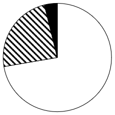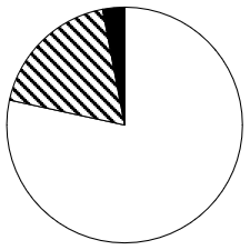 以下饼状图中,最能准确反映2023年一季度我国外贸进出口总额中,东部地区(白色)、中西部地区(斜线)和东北地区(黑色)外贸进出口额占比关系的是: