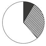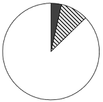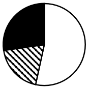 以下饼图中,最能准确反映2023年6月末全国汽车保有量超过100万辆的城市中,保有量在100~200万辆之间的城市(白色)、保有量在200~300万辆之间的城市(斜线)和保有量超过300万辆的城市(黑色)个数占比关系的是: