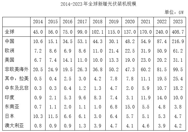 以下国家和地区中,2014-2023年新增光伏装机规模平均增速(以2014年为基准)最快的是: