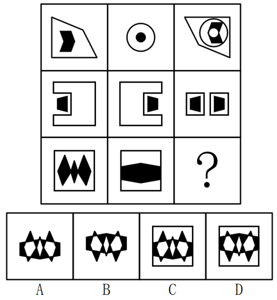 从所给的四个选项中,选择最合适的一个填入问号处,使之呈现一定的规律性( )。