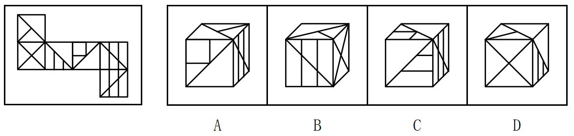 下面给定的是正方体的外表面展开图,哪一个选项不能由它折叠而成?( )