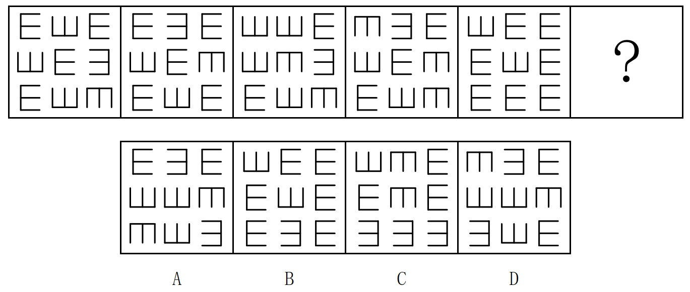 请从所给的四个选项中,选出最合适的一个填入问号处,使之呈现一定的规律性。( )