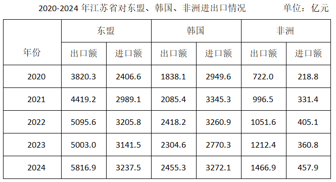 2024年江苏省对东盟、韩国、非洲的净出口总额是( )。