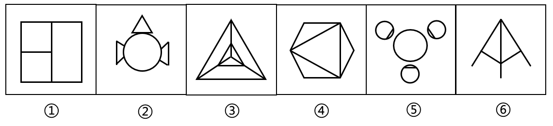 把下面的六个图形分为两类,使每一类图形都有各自的共同特征或规律,分类正确的一项是( )。