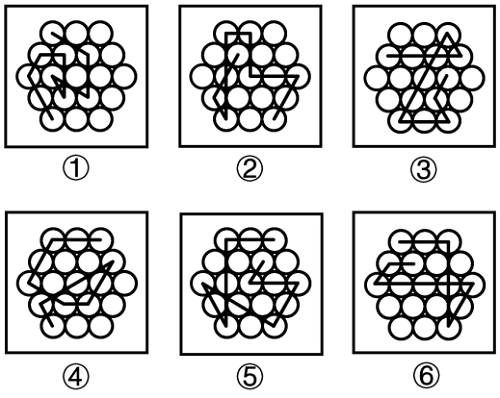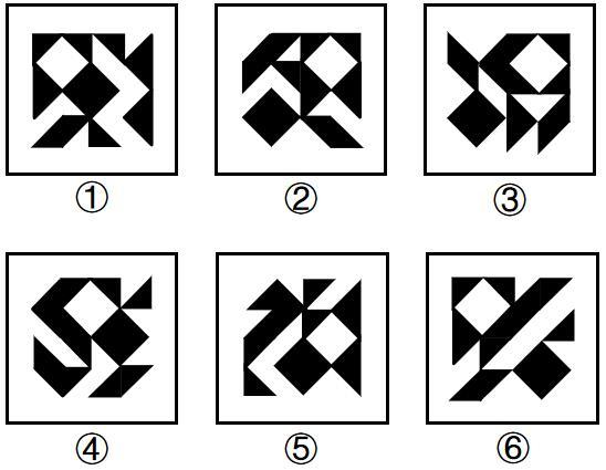 把下面的六个图形分为两类,使每一类图形都有各自的共同特征或规律,分类正确的一项是: